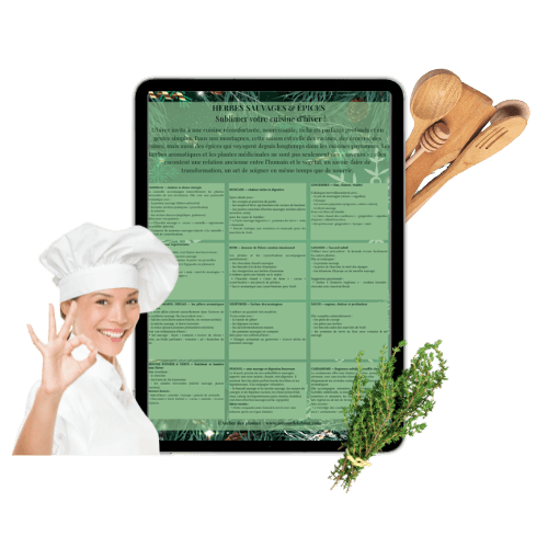 Recevez une fiche pédagogique illustrée pour apprendre à marier plantes sauvages et épices hivernales.